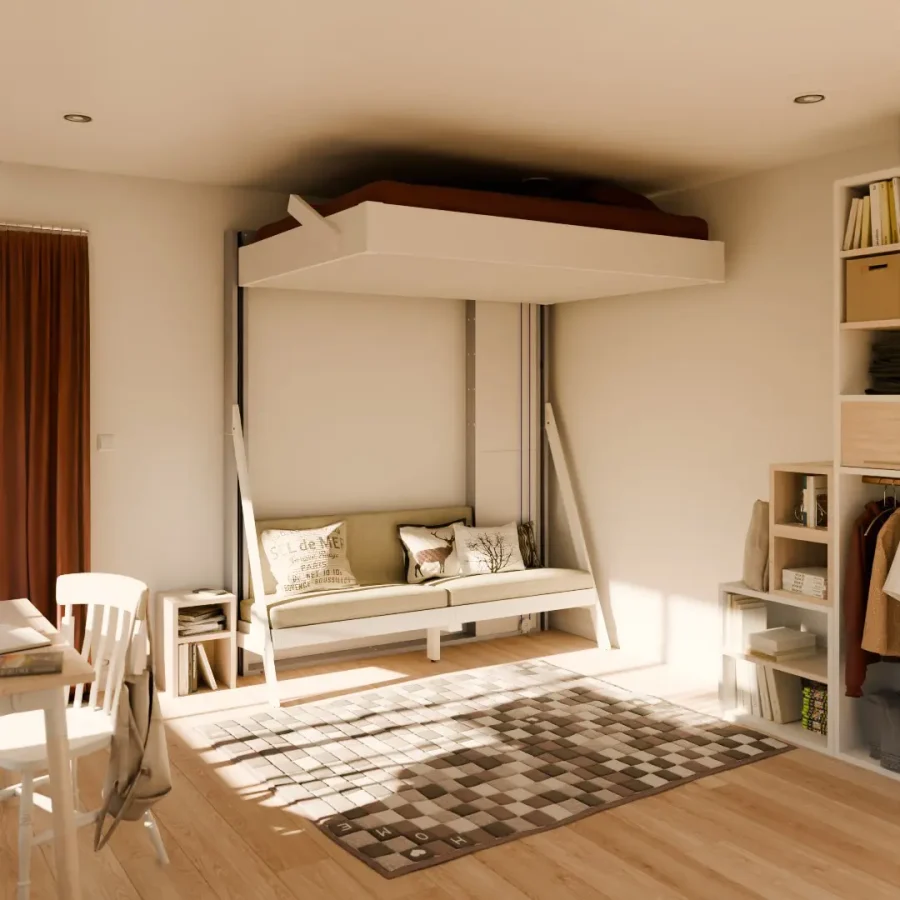 Avec notre lit escamotable avec canapé, vous n’avez plus besoin de choisir entre salon et chambre : nous avons réuni les deux fonctions dans un meuble élégant et fonctionnel. C’est une solution simple pour vivre mieux dans un espace restreint, avec un style affirmé et une qualité durable.